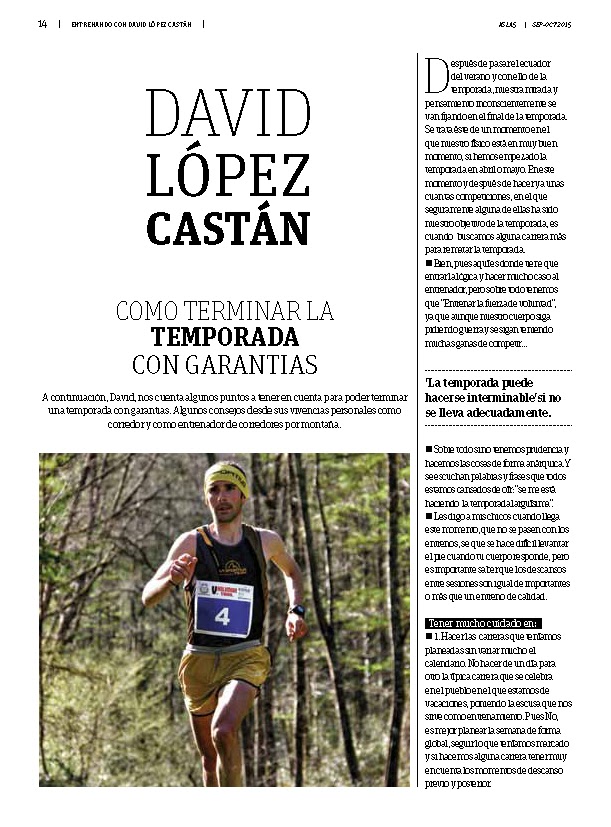No compitas todas las semanas, establece un orden con cabeza, haz caso al entrenador, no intentes hacer más de lo que te toca, se prudente, entrena para mantenerte y sobre todo disfruta hasta final de Temporada.