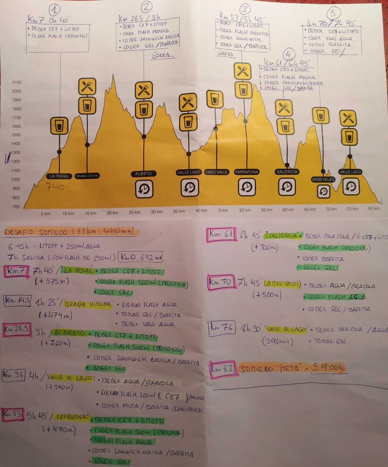 siguiente punto de control y avituallamiento, paso con 5h40′ tiempos clavados.